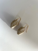まるで南国の、見たこともない不思議な果実の種の様なパーツでピアスを作りました。パーツは、80年代のドイツ製のヴィンテージビーズです。ホワイトとゴールドの色味が、意外とどんなファッションにも溶け込みかつ個性を引き出します。とっても軽いのもいい感じ!