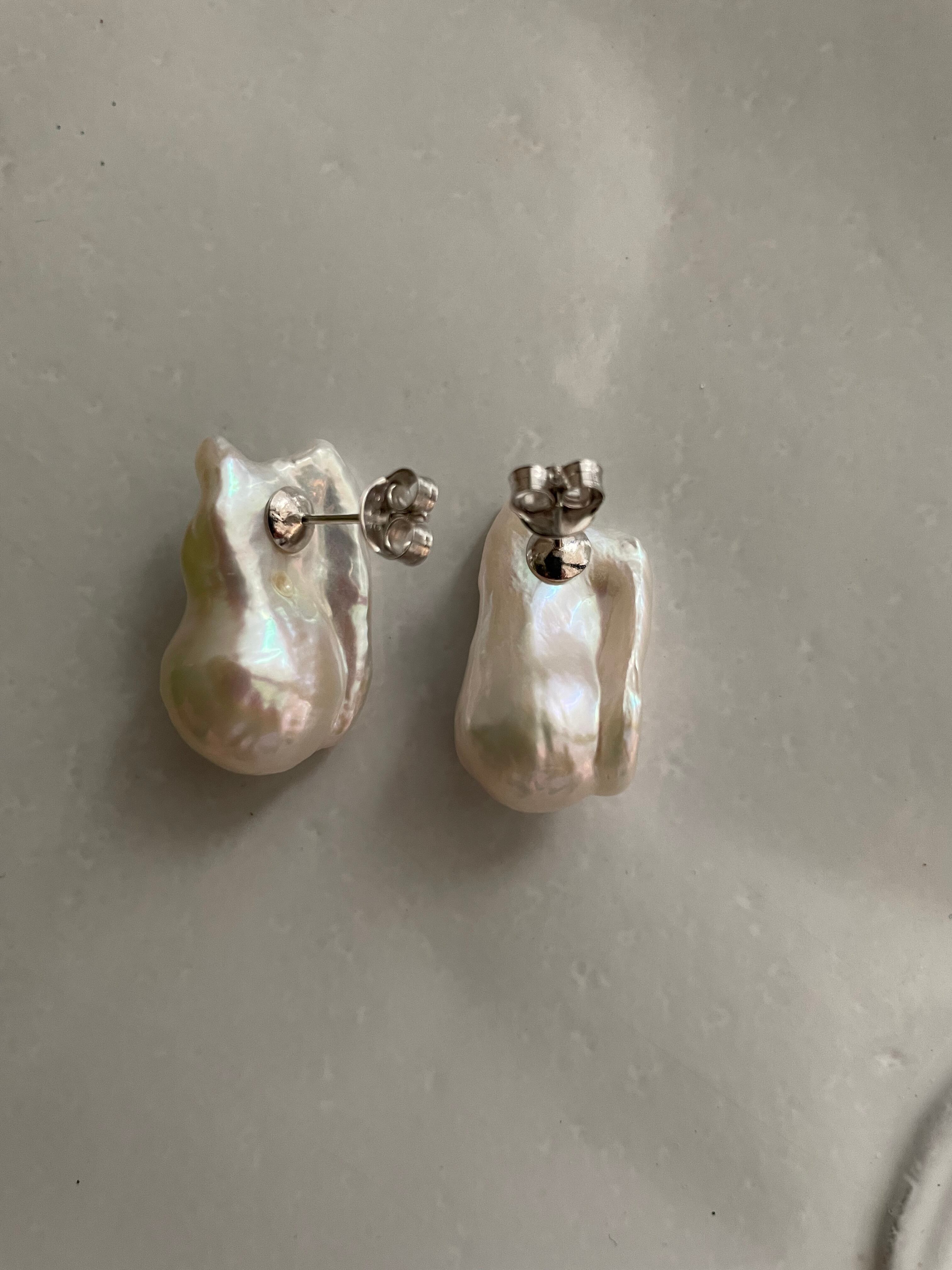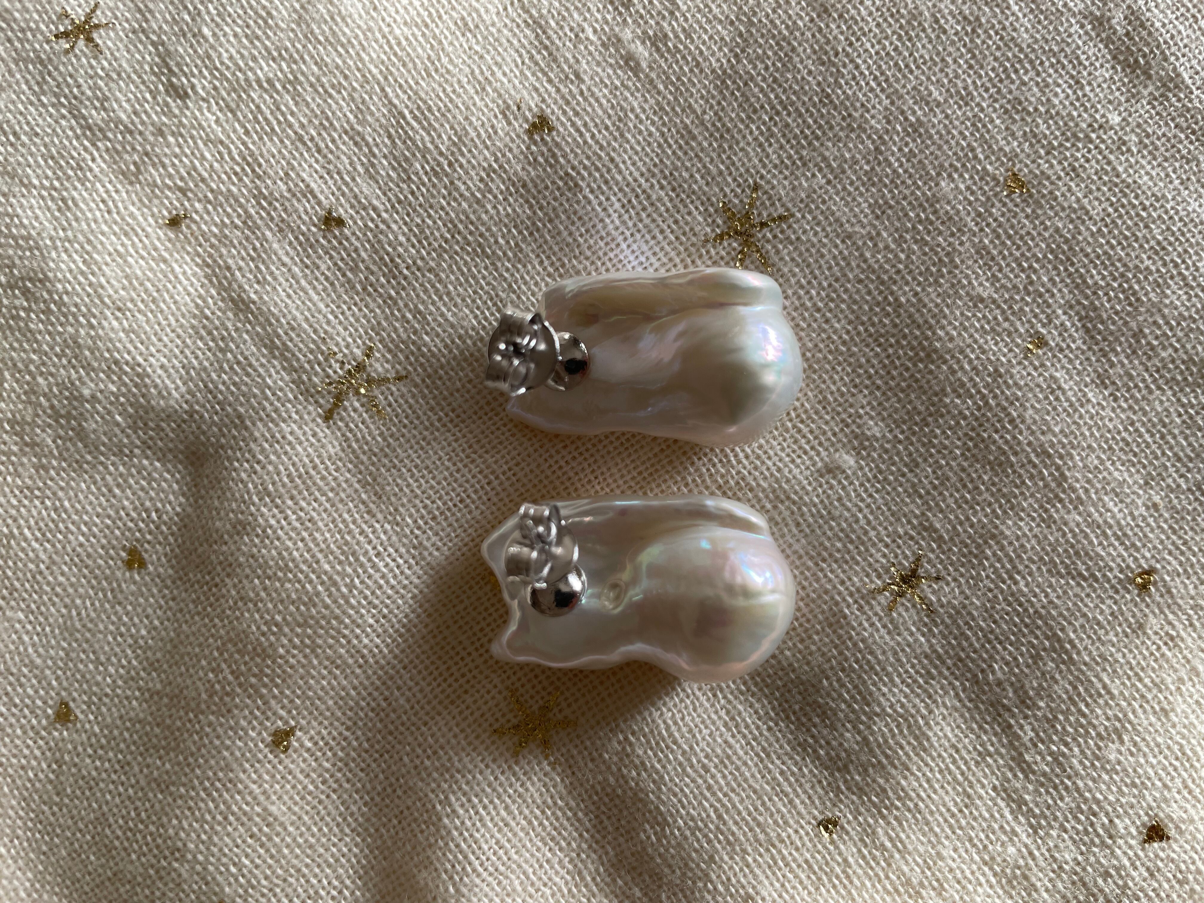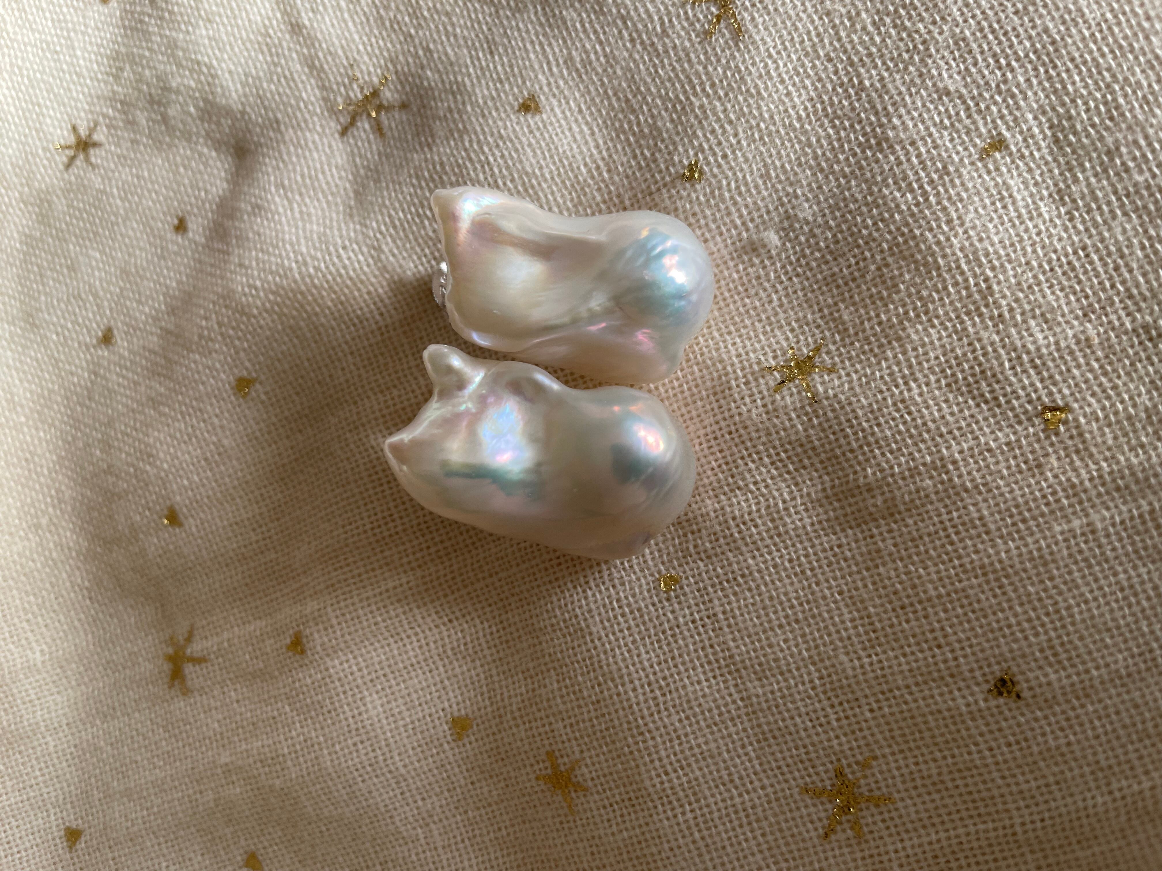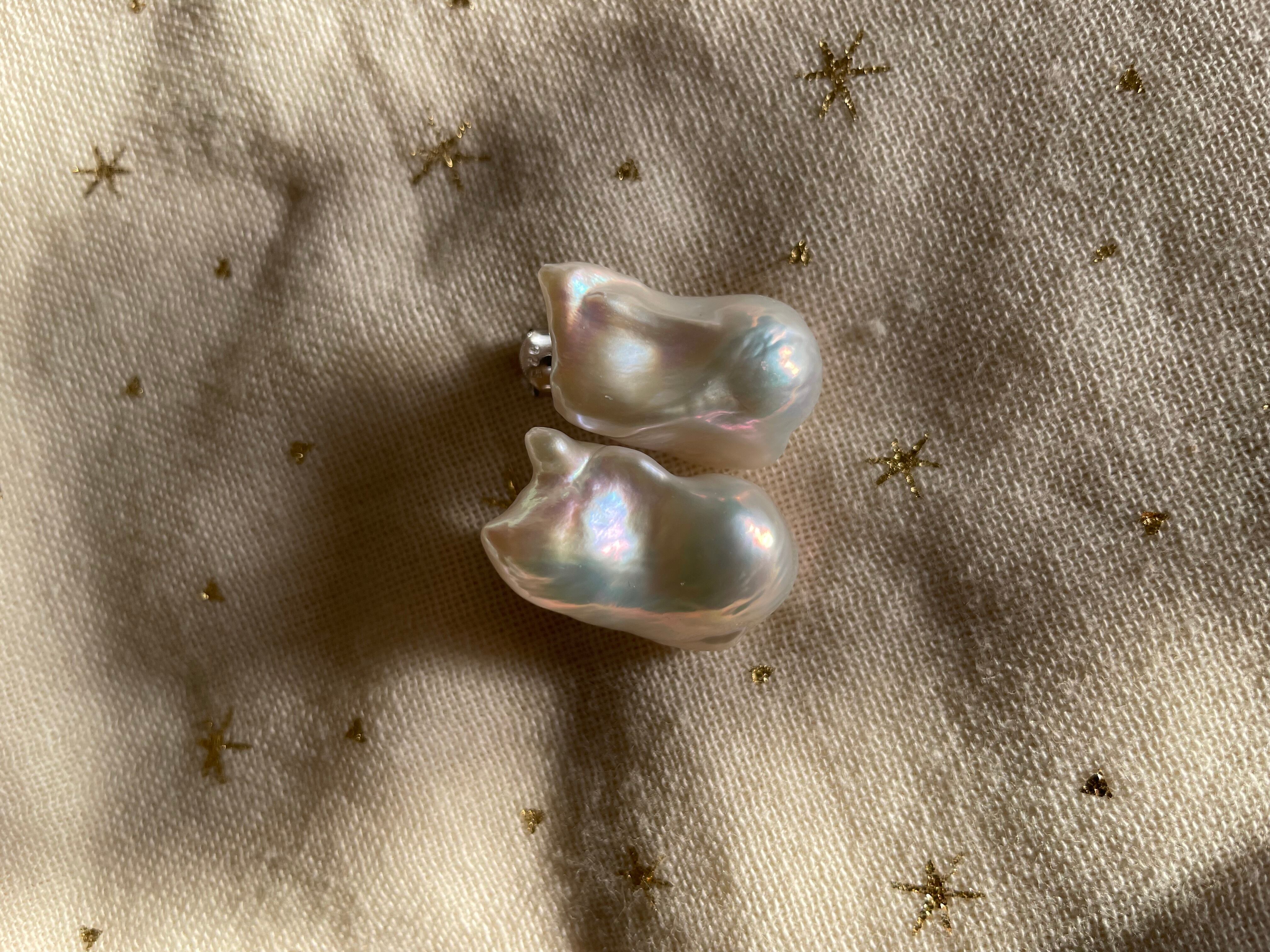 自然が奏でる美しいバロック型に惚れ惚れしてしまう、オイスター型の大ぶりな淡水パールのピアスです。