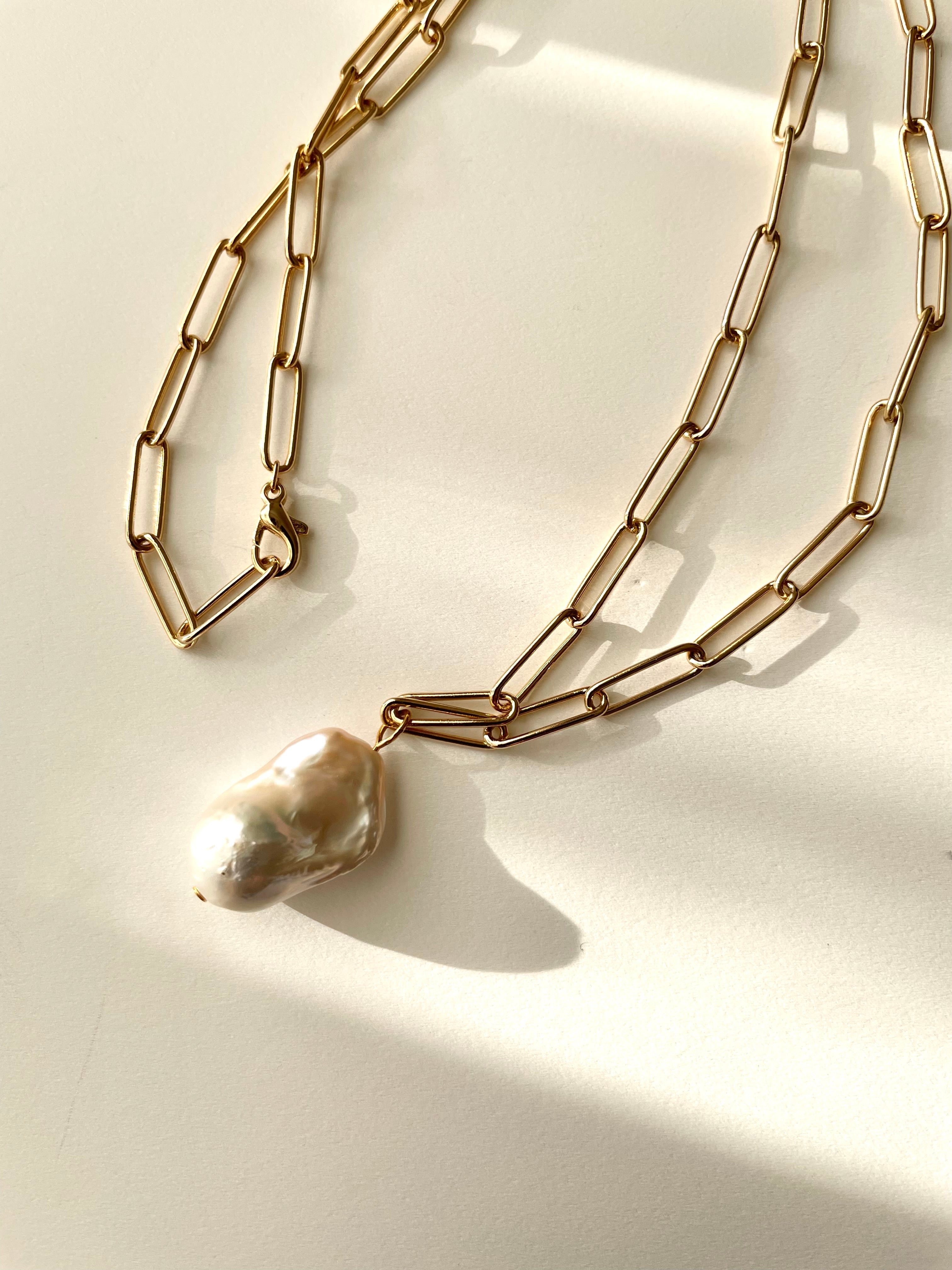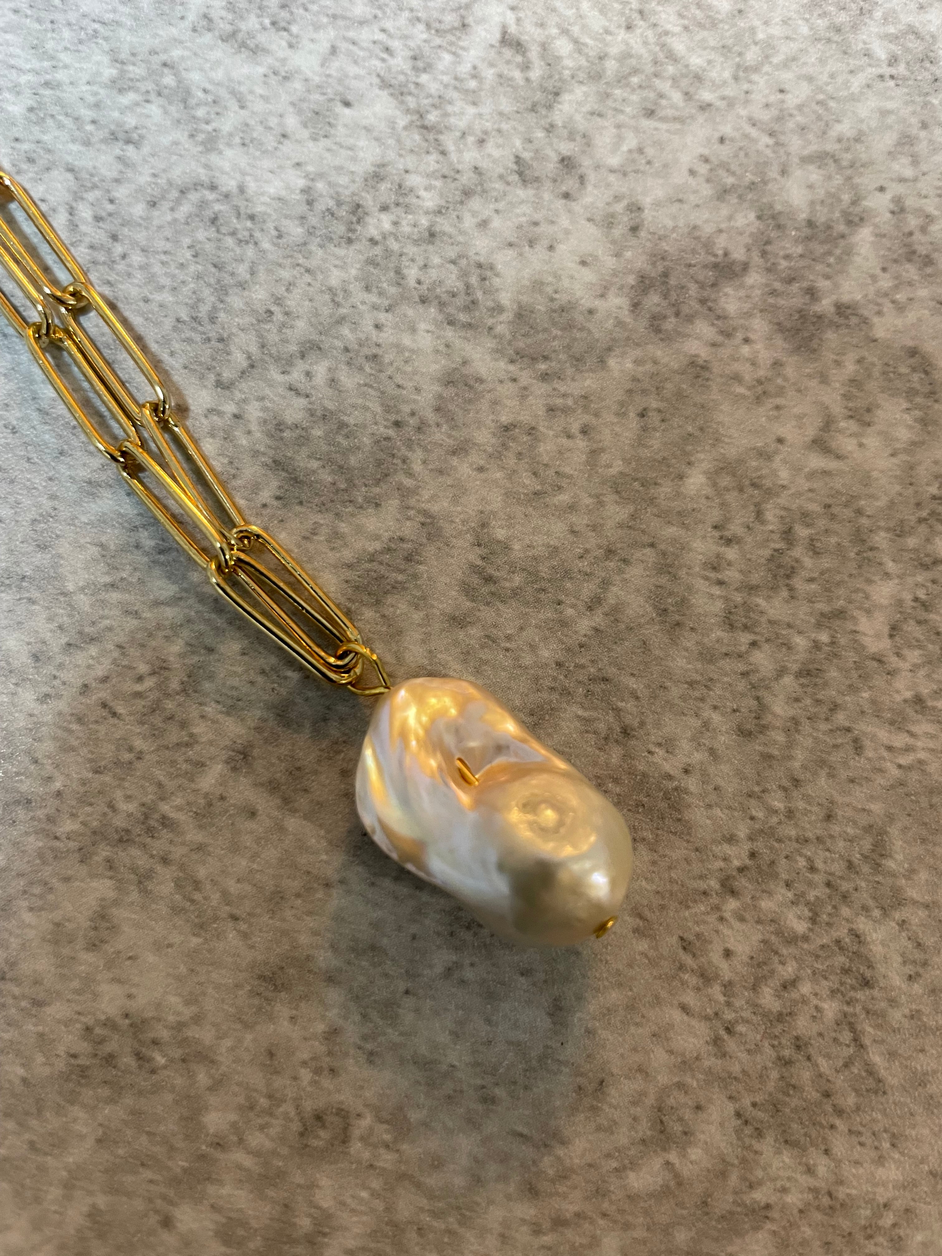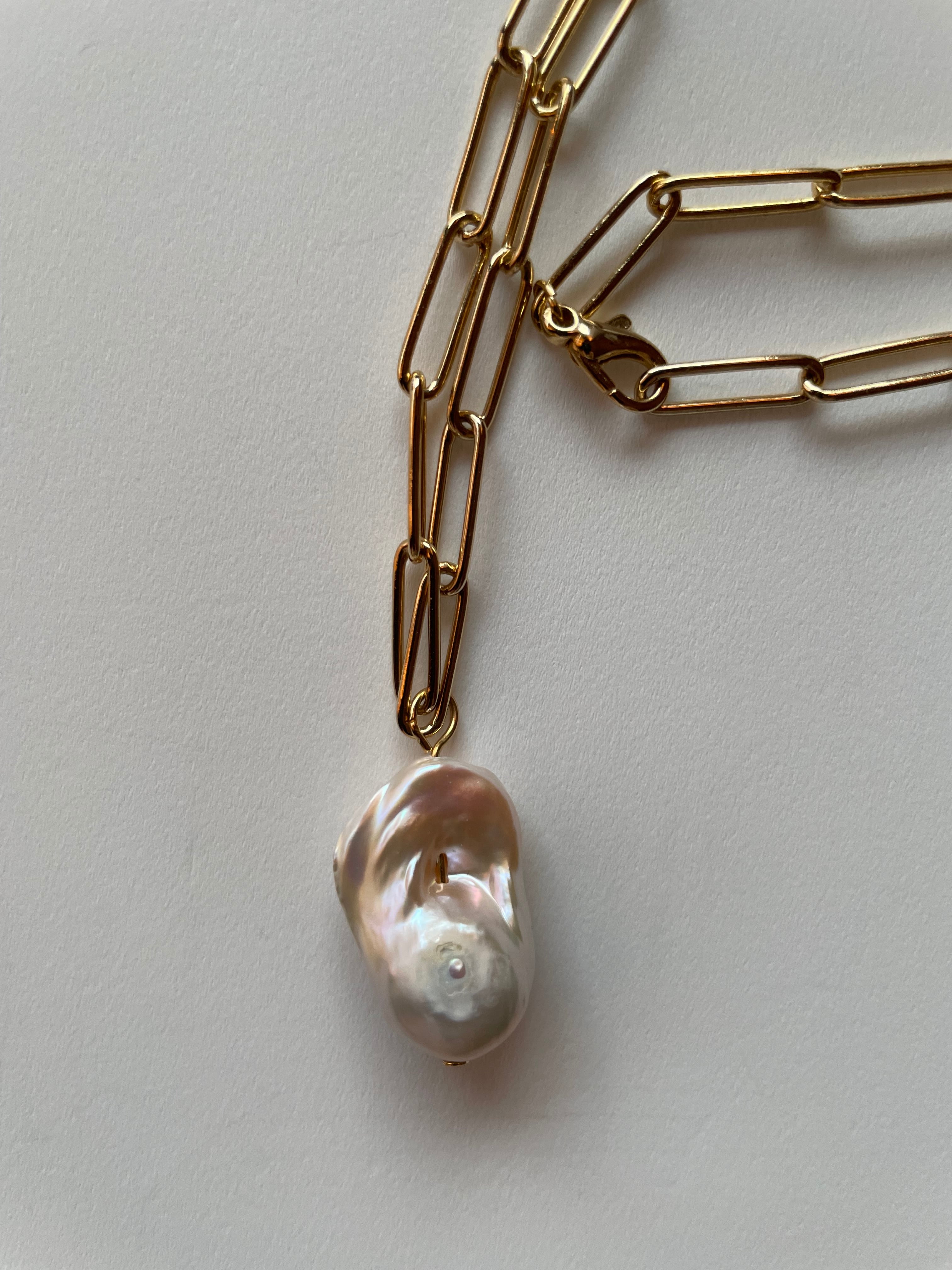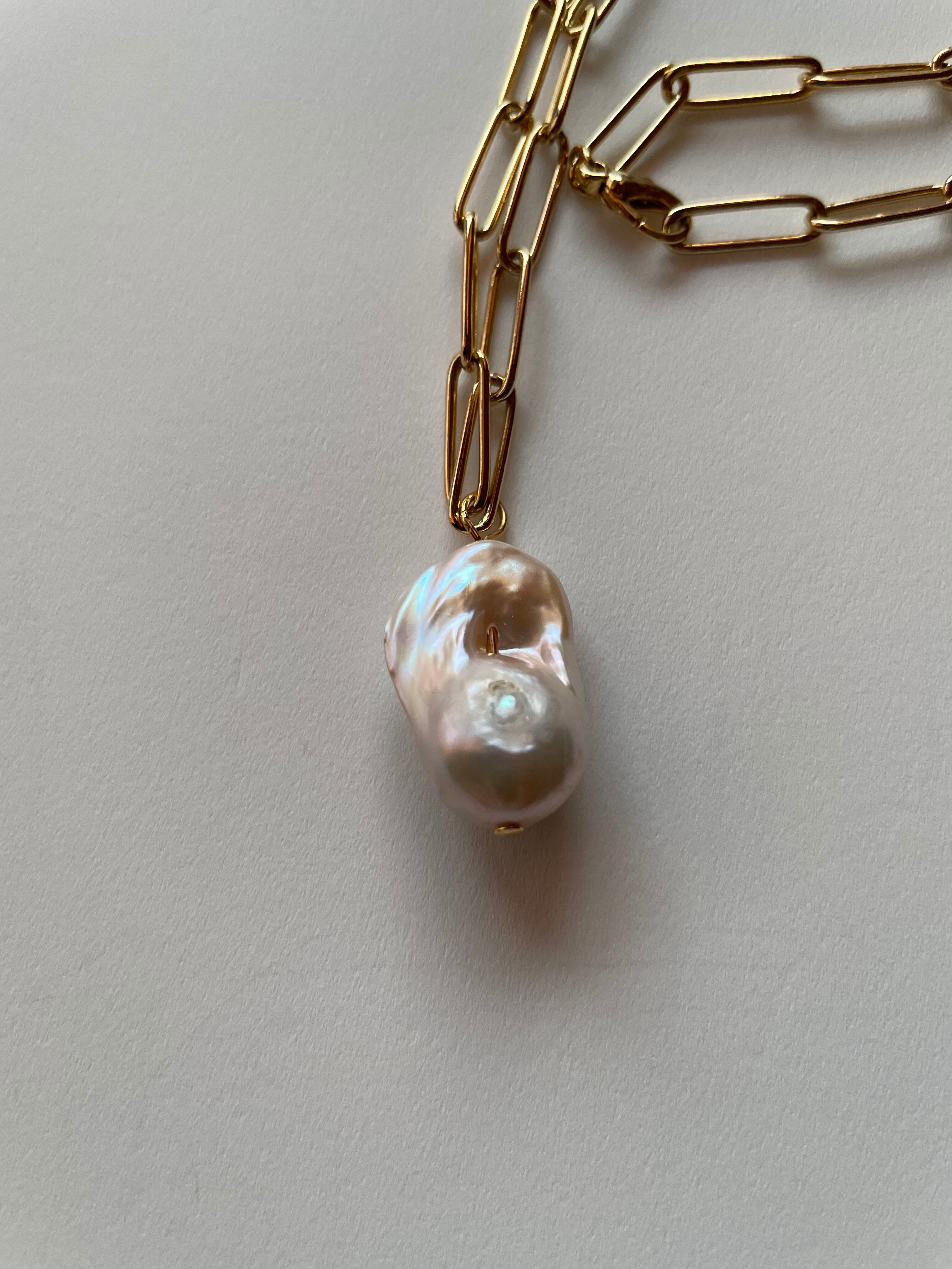 自然が奏でる美しいバロック型に惚れ惚れしてしまう、オイスター型の大ぶりな淡水バロックパールのネックレスです。