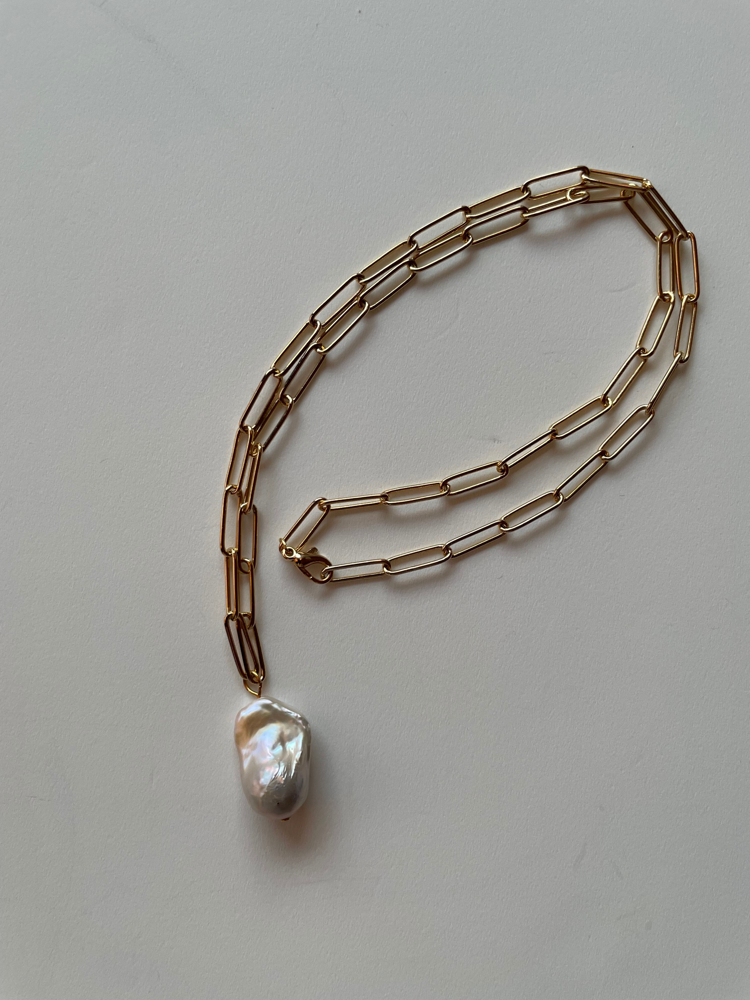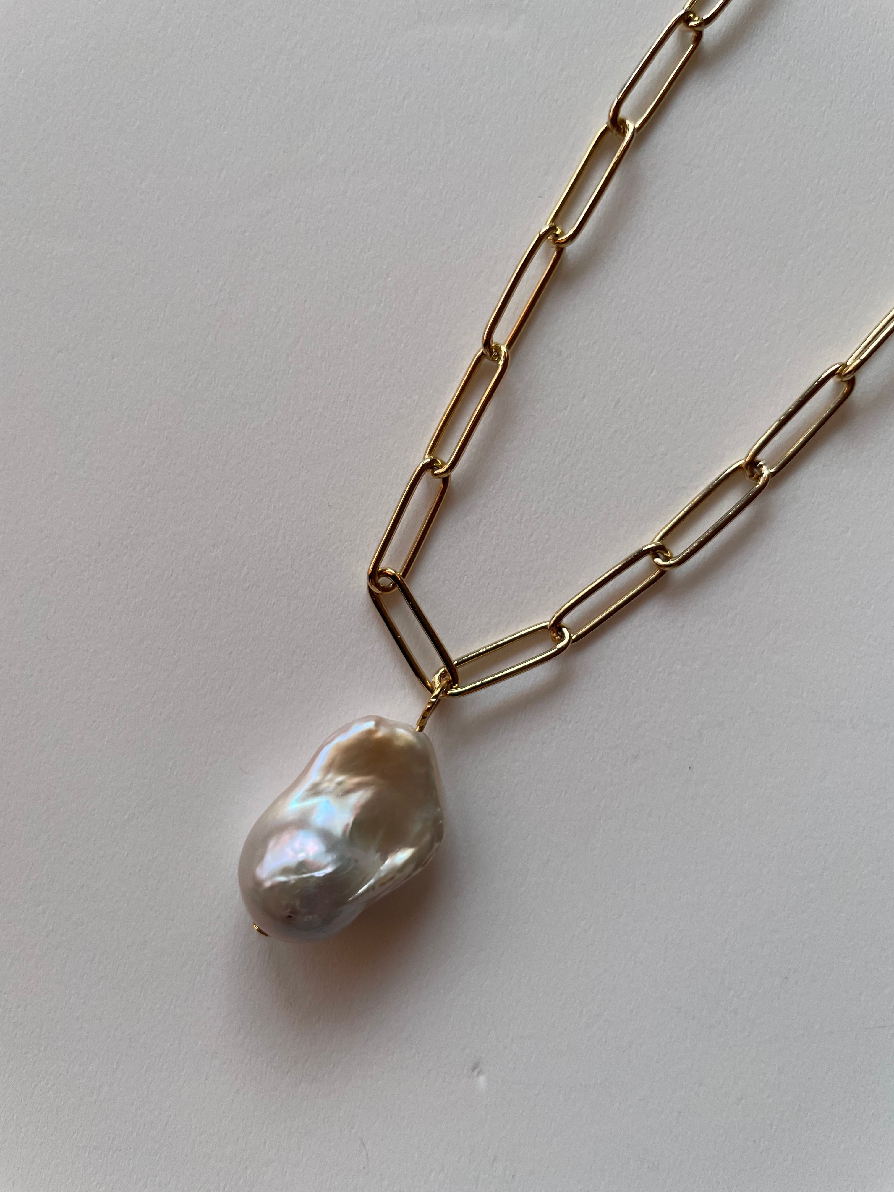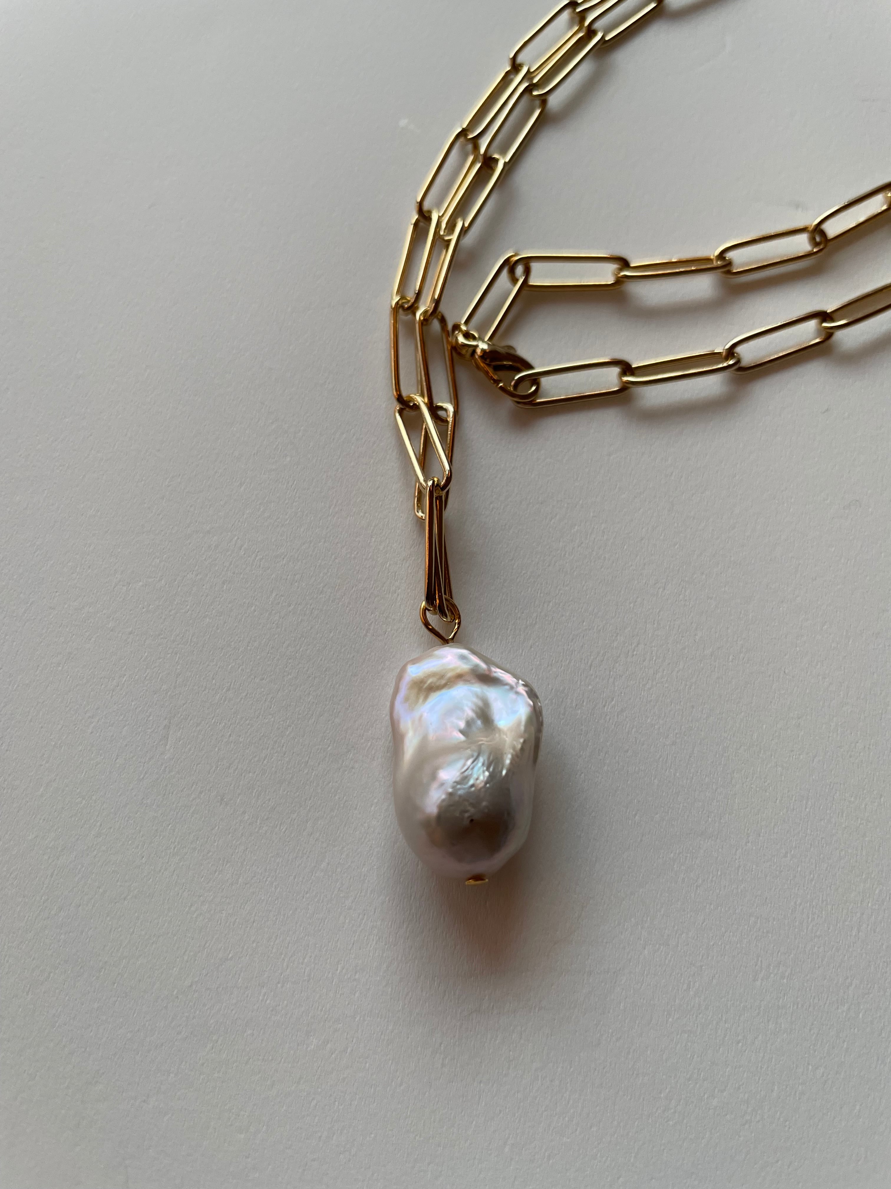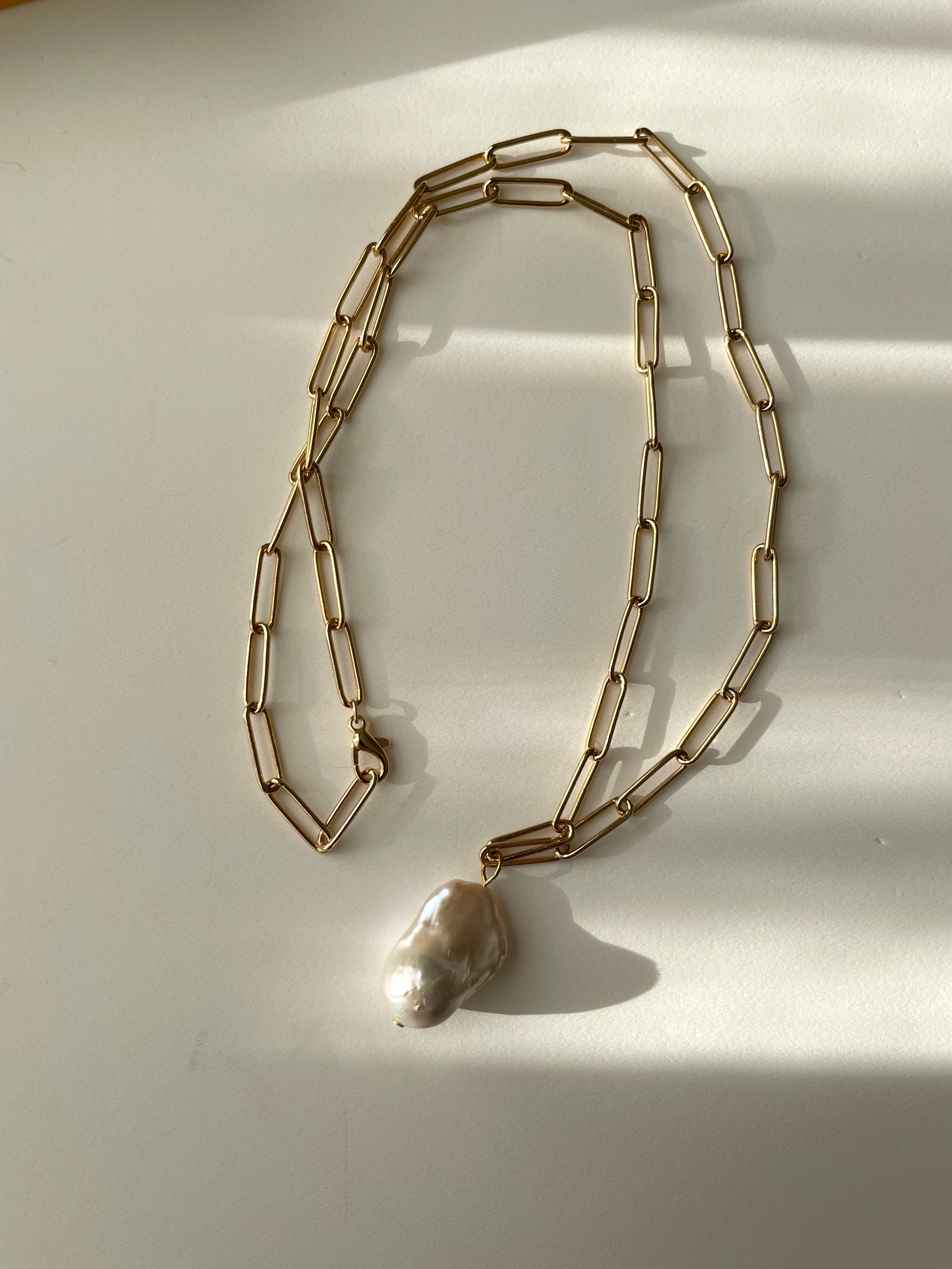 自然が奏でる美しいバロック型に惚れ惚れしてしまう、オイスター型の大ぶりな淡水バロックパールのネックレスです。