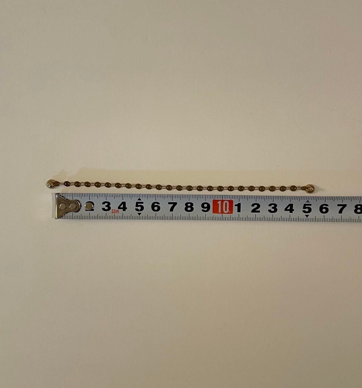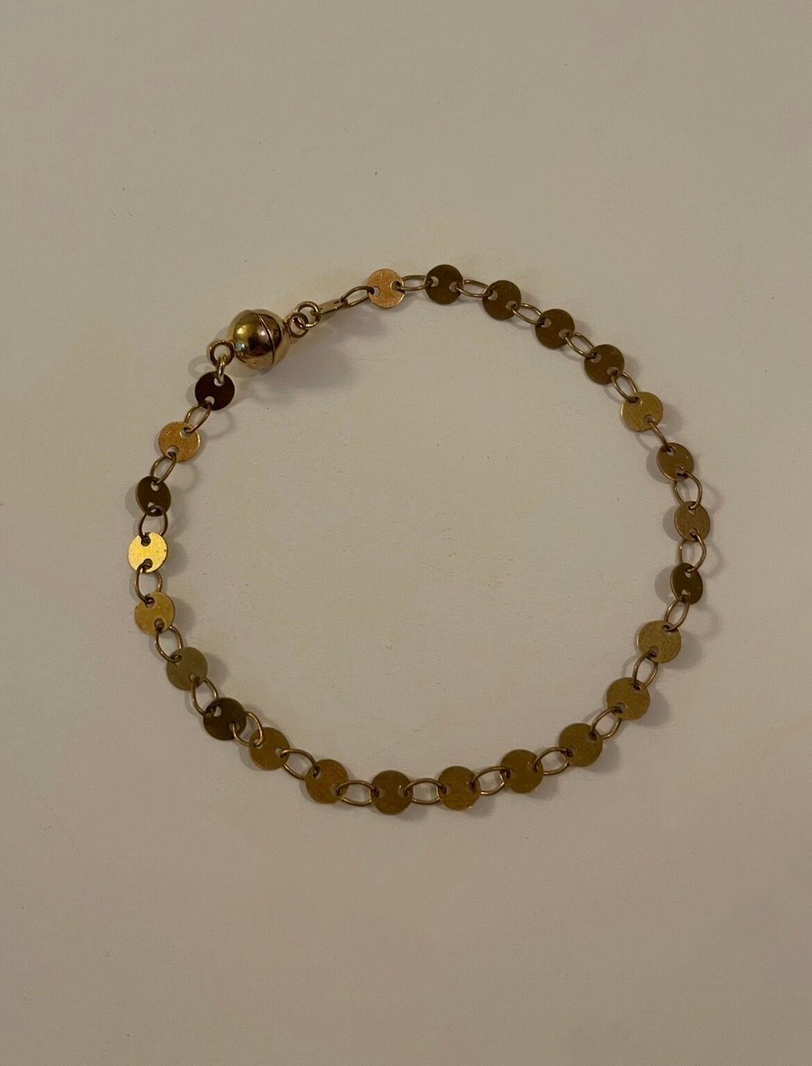 真鍮製の丸いプレートチェーンをブレスレットにしました。金具部分は便利なマグネット式で、サッと取り付けられます。