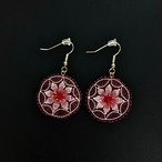 350種類以上あるニャンドゥティの伝統的な模様のなかでも【蟻塚】をモチーフとしたデザインに赤・白のグラデーションの配色が大変美しいピアスです。