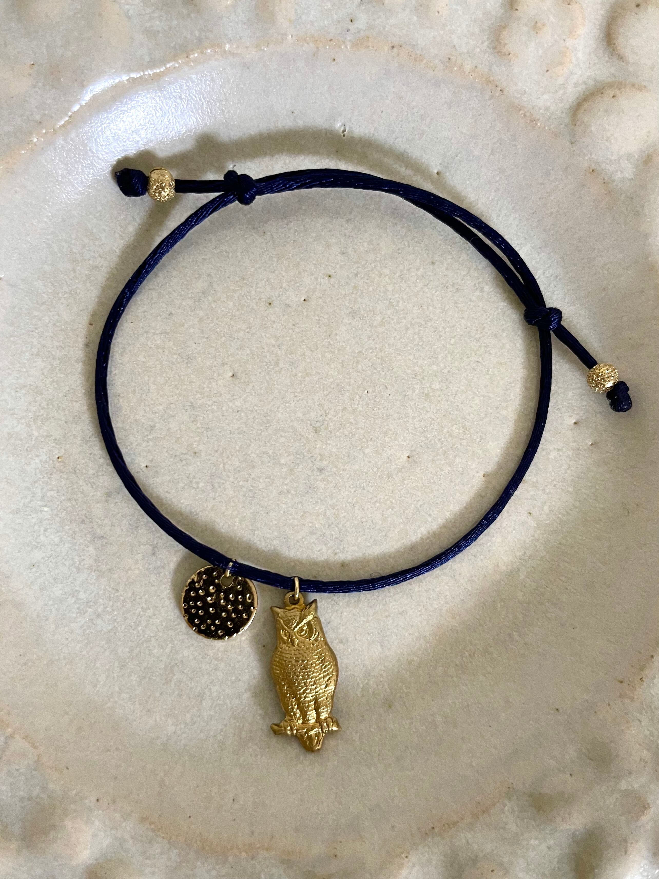 賢いフクロウに合わせてネイビーのシルクコードを合わせました。